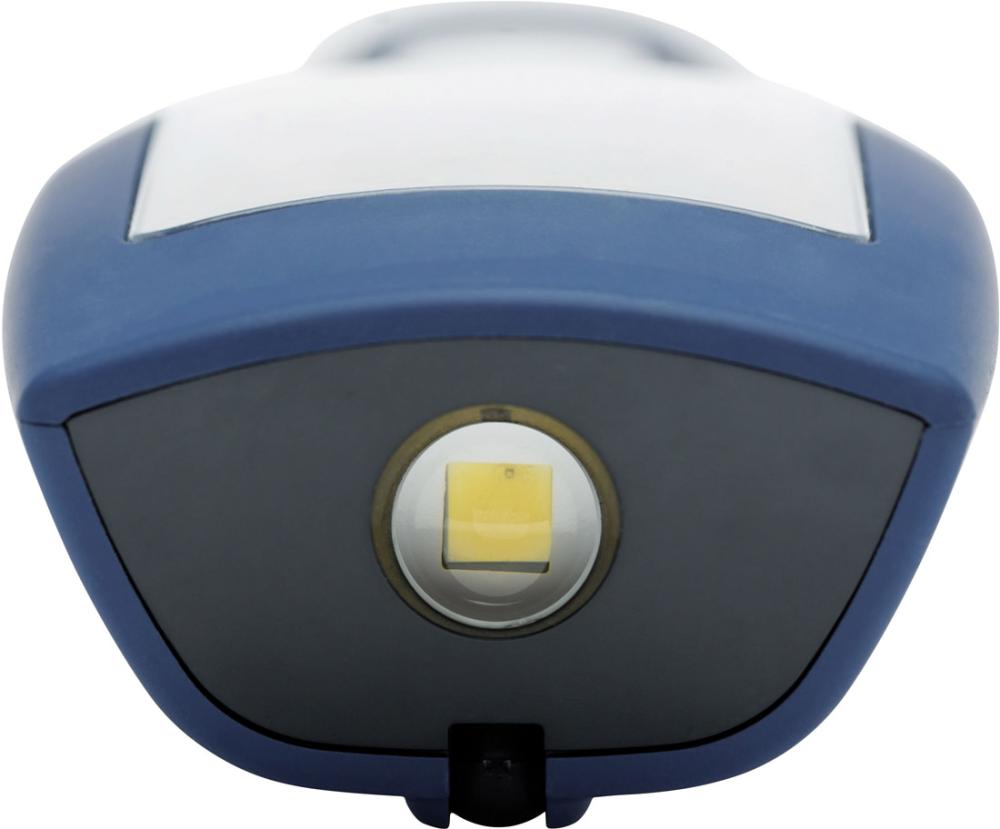 Дизайн: Пластиковий корпус з основним світлом та прожектором. Головку ліхтаря можна повертати на 180°. На задній панелі ліхтаря встановлені два висувні гачки для підвішування та два міцних інтегрованих магнітних тримачі, а також магнітний тримач на цоколі ліхтаря для оптимального кріплення. У комплект поставки входить літій-іонний акумулятор 3,7 В/2200 мАг.