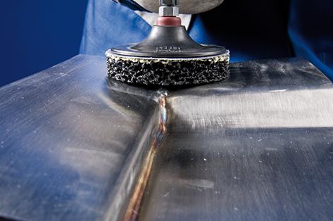Конструкція: Грубоструктурований абразивний очисний повсть, виготовлений зі спеціальної комбінації синтетичних волокон та абразивного зерна з карбіду кремнію (SiC). Оптимальне контурне шліфування та відсутність засмічення інструменту завдяки високій гнучкості та відкритій структурі. Дуже тривалий термін служби та висока швидкість видалення матеріалу.