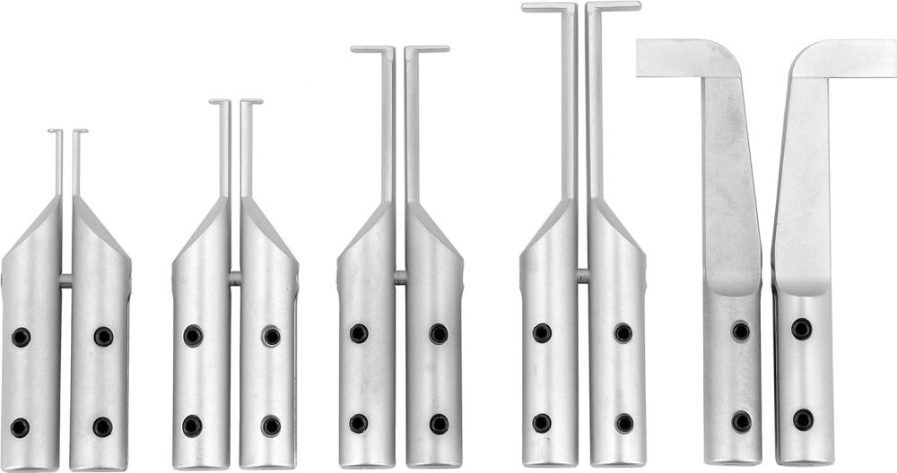 Vyhotovenie: pre posuvné meradlá 150 mm, 200 mm a 300 mm. Použitie: Na meranie vnútorných a vonkajších drážok, O krúžkov a podrezaní v spojení s posuvnými meradlami s maximálnou hrúbkou meracej čeľuste 3,5 mm. Obsah balenia: 5 árov.