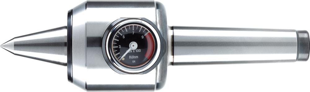Vyhotovenie: teleso a hrot kované v zápustke, kalené a brúsené. Voľný hrot je možné viackrát prebrúsiť a je uložený v stopke s malou odchýlkou 60° VL hrotu. Presné valivé ložisko s jazýčkovým tesnením. Upínaciu silu je možné priamo odčítať na manometri v daN. Použitie: Zvlášť vhodný ako hrot koníka k unášačom na čelnej strane, na určenie a udržiavanie konštantnej upínacej sily, ako aj na upínanie dlhých, štíhlych obrobkov, aby sa predišlo prehnutiam.
