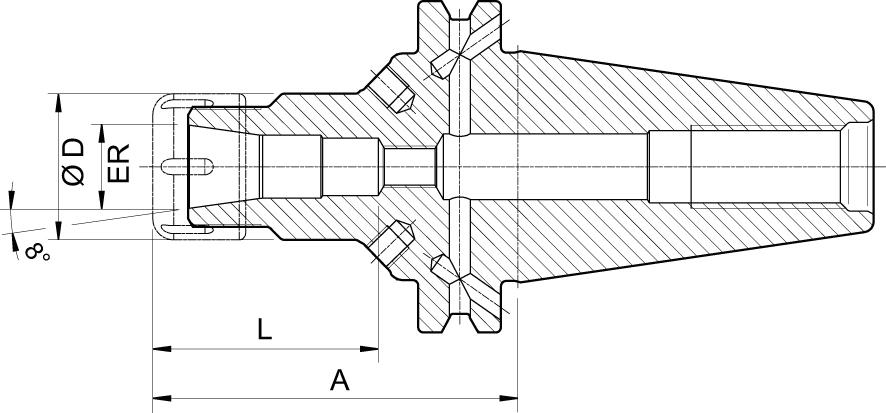 Застосування: Для затискання інструментів з циліндричним хвостовиком у цангових патронах Power Collet відповідно до ISO 15488 (DIN 6499). Для високошвидкісної обробки та фрезерування. Підвищена продуктивність обробки завдяки вищим швидкостям, подачам та більшій глибині різання. Плавніший хід завдяки геометрії без вібрацій забезпечує кращу якість поверхні та захищає інструмент, шпиндель та верстат.