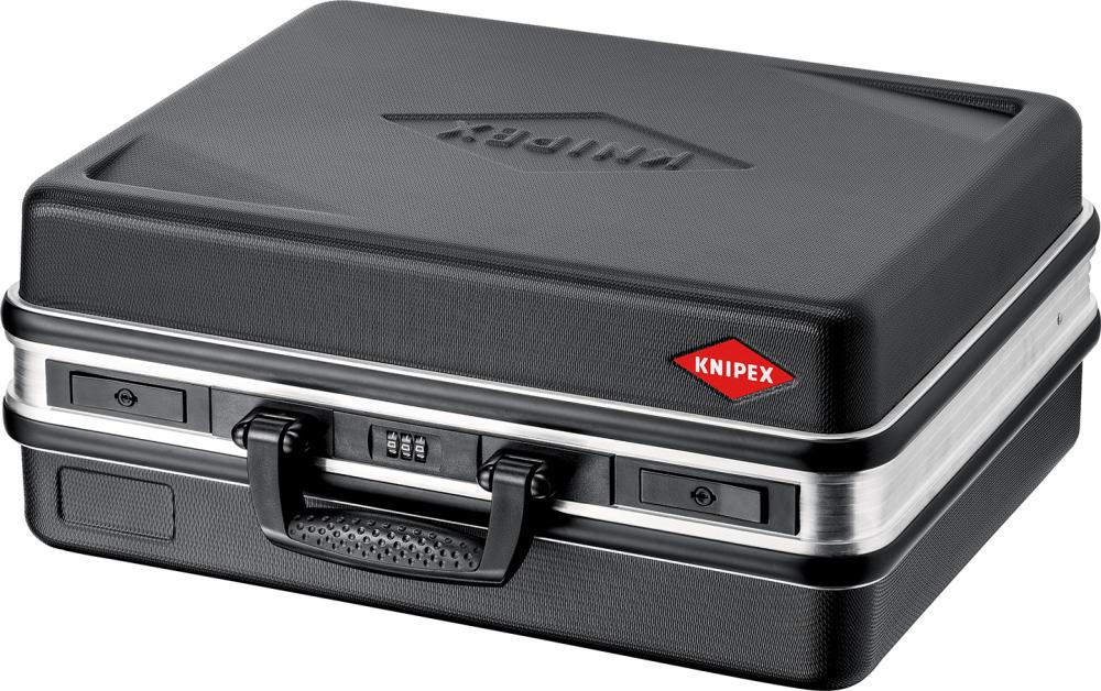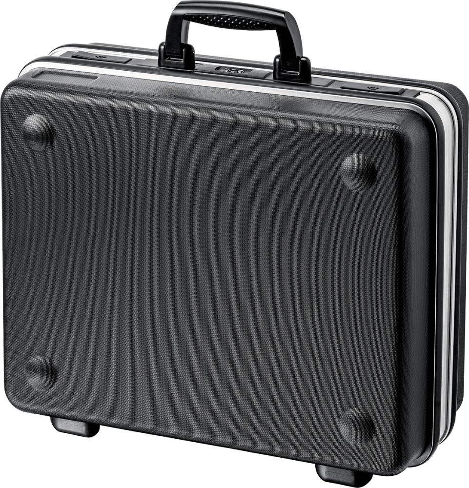 Vyhotovenie: Z ABS plastu odolného proti opotrebeniu a vlhkosti, čiernej farby, s odolnými tabuľami na náradie zo špeciálneho plastu pre odolnosť proti poškriabaniu, rozmerovú stálosť a odolnosť proti vlhkosti, tukom a chemikáliám a s pevnou rukoväťou. Výška škrupiny dna 50 mm, možno ľubovoľne deliť. S pozinkovanými kovovými závesmi, kufrík pojme až 15 kg, celoobvodový hliníkový rám. Veľmi stabilný, s podlahovými klzákmi. Popisovacie pole s dvoma nálepkami na individuálne označenie. Uzamykateľné pomocou 2 sklopných cylindrických zámkov a 3-miestneho číslicového zámku. Vybavenie: 21 zástrčných priehradiek na dvojstrannej tabuli na náradie 13 zástrčných priehradiek na krycej doske 1 škrupina dna s krycou doskou 1 priehradka na dokumenty na malej tabuli na nástroje na veku 7 pridržiavacích pútok na malej tabuli na nástroje na veku