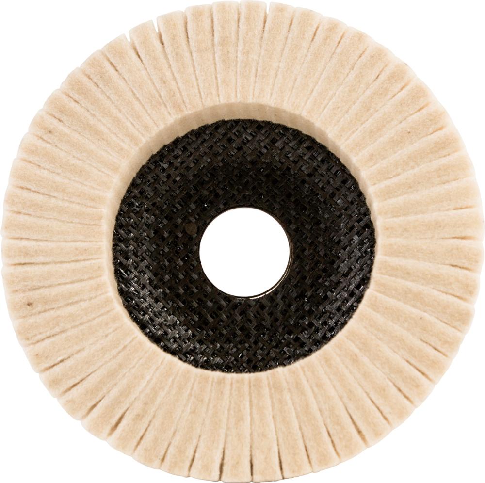 Конструкція: 100% натуральний фетр на скловолокнистій основі. Пелюстки дозволяють диску ідеально адаптуватися до контуру заготовки та рівномірно розподіляти полірувальну пасту. Це зменшує теплове навантаження.