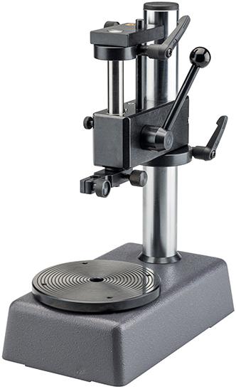 Конструкція: Висока вимірювальна колона з великим діапазоном регулювання, з обмежувальним кільцем для вимірювання висоти, ідеально підходить для зміни вимірювальних датчиків. Великий хід для опускання датчика та обмежувач глибини для обмеження ходу. Великий вимірювальний стіл з пилозбірниками та 4 різьбовими отворами для окремого кріплення призматичного обмежувача. Затискний елемент для Ø 10 мм, додатковий затискний отвір Ø 8 мм на верхній пластині для кріплення вимірювача відхилень для точного зчитування виміряної глибини.