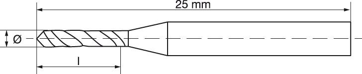 Mikrovrták Vyhotovenie: Špeciálny vrták, povrch bez povlaku, pravorezné, so zosilnenou stopkou, vysokou presnosťou vystredeného chodu a precíznym výbrusom hrotu. Tolerancia priemeru: na špirálovej časti 0/–0,004 mm. Použitie: Na vŕtanie malých otvorov s vysokou presnosťou vŕtania. Obzvlášť vhodné na obrábanie vysokolegovaných ocelí, ako aj krátko- a dlhotrieskových materiálov. Hersteller: Einkaufsbüro Deutscher Eisenhändler GmbH, EDE Platz 1, 42389 Wuppertal, DE, +4920260960, webkontakt@ede.de