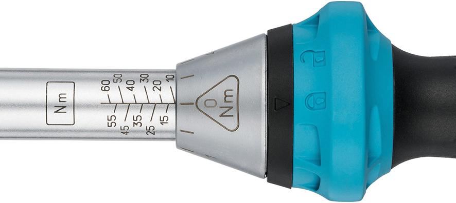 Конструкція: Міцна та довговічна трубчаста сталева конструкція з ергономічною пластиковою ручкою з трикутною тріскачкою запобігає неконтрольованому скочуванню динамометричного ключа. Фіксатори на ручці забезпечують швидке та безпечне налаштування значення крутного моменту. Безпечне блокування встановлених значень за допомогою функції блокування на обертовому кільці. Звуковий та тактильний сигнал спрацьовування. Висока точність завдяки дрібній шкалі. Немає потреби повертатися до найменшого значення на шкалі. Класифіковано відповідно до DIN EN ISO 6789-2:2017 тип II. Поставляється з сертифікатом випробувань, в упаковці Hexa-Drehpack.