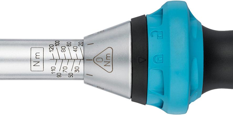 Конструкція: Міцна та довговічна трубчаста сталева конструкція з ергономічною пластиковою ручкою з трикутною тріскачкою запобігає неконтрольованому скочуванню динамометричного ключа. Фіксатори на ручці забезпечують швидке та безпечне налаштування значення крутного моменту. Безпечне блокування встановлених значень за допомогою функції блокування на обертовому кільці. Звуковий та тактильний сигнал спрацьовування. Висока точність завдяки дрібній шкалі. Немає потреби повертатися до найменшого значення на шкалі. Класифіковано відповідно до DIN EN ISO 6789-2:2017 тип II. Поставляється з сертифікатом випробувань, в упаковці Hexa-Drehpack.