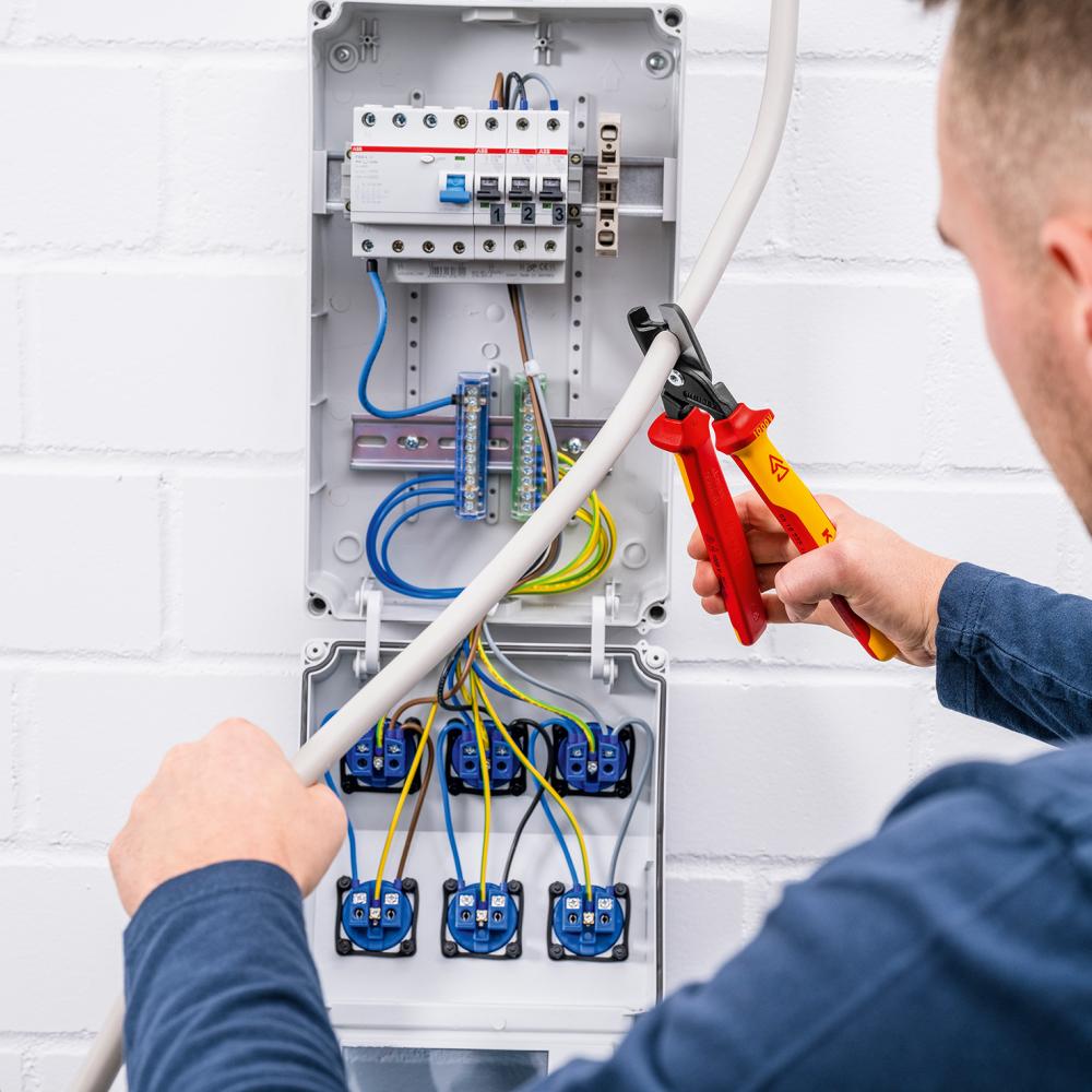 Nožnice na káble VDE s viaczložkovými rukoväťami225 mm štíhly tvar hlavy KNIPEX