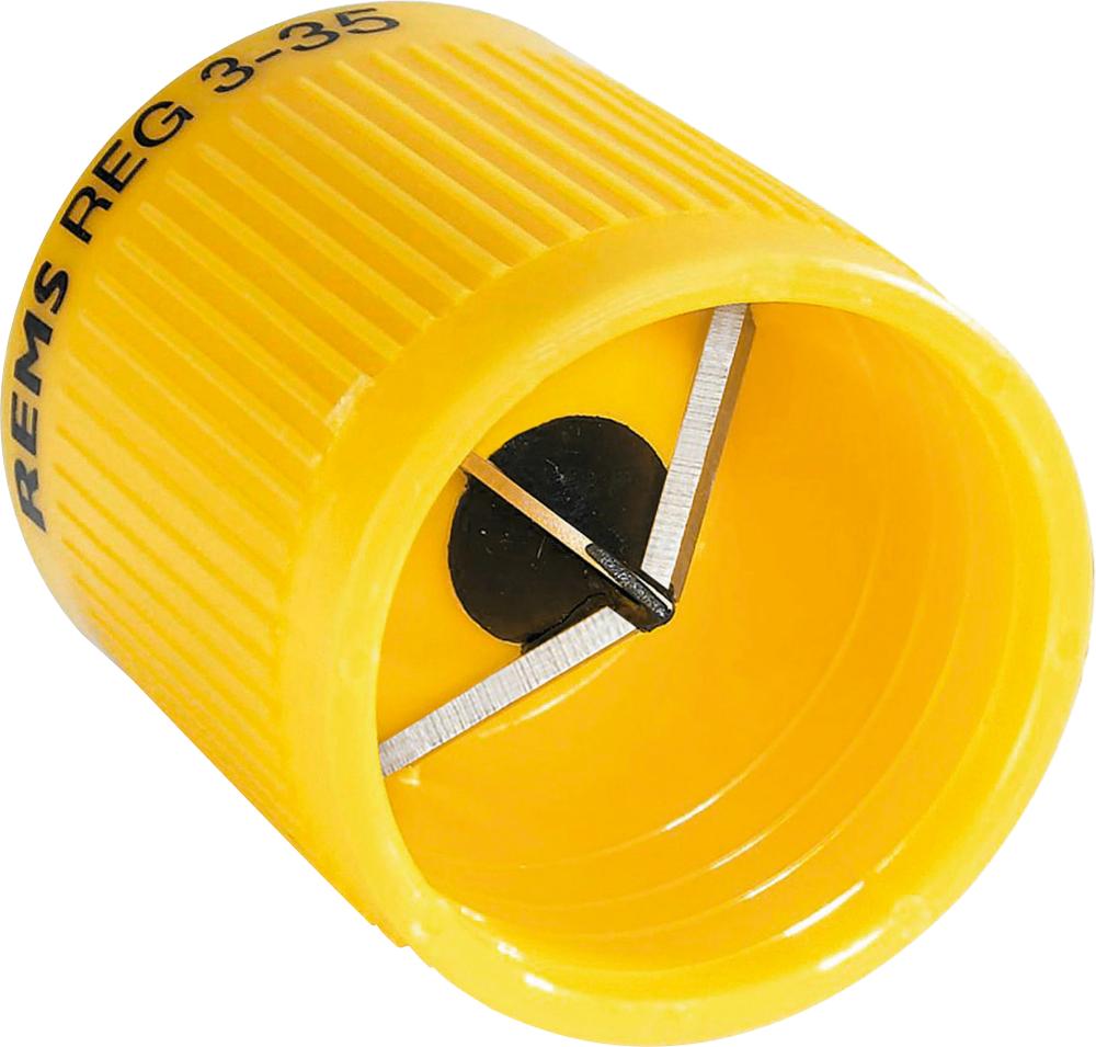 Robustné plastové puzdro odolné voči nárazom s tromi špeciálne brúsenými reznými hranami. Na rýchle odhrotovanie medených, mosadzných, hliníkových a plastových rúr.