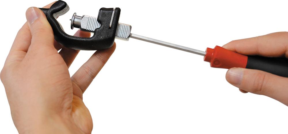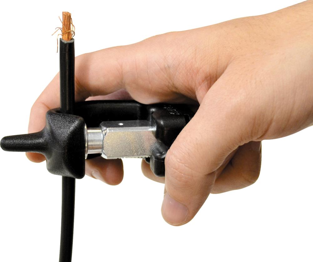 Конструкція: Корпус виготовлений з поліаміду, армованого скловолокном, зі змінним лезом, використовується з обох боків. Глибина різання регулюється за допомогою гвинта з накаткою, товщина ізоляції до 2,5 мм. Придатний для кругового та поздовжнього різання.