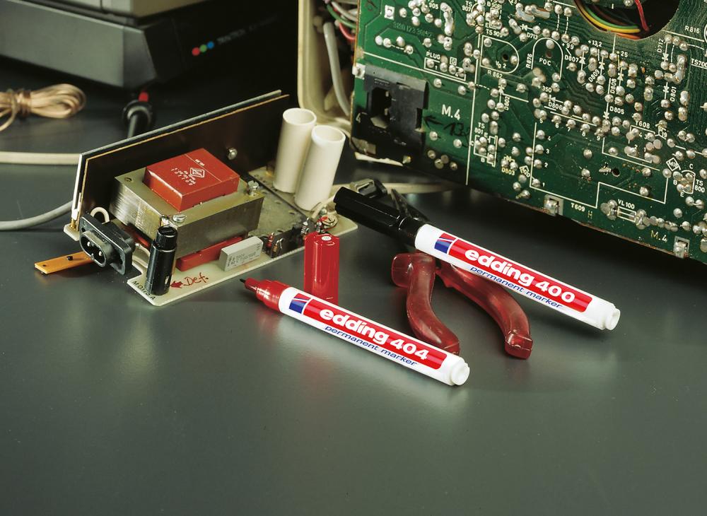 Vyhotovenie: Vymeniteľný okrúhly hrot. Rýchlo schnúci, permanentný atrament bez zápachu bez prísady toluénu/xylénu, odolný voči oderu a vode, odolný voči svetlu. Použitie: na popisovanie na takmer všetky materiály, aj kov, sklo a plast. 404 S plastovou stopkou.