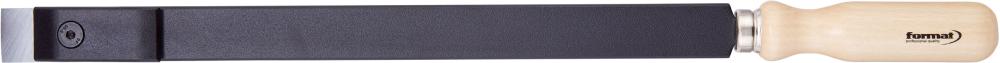 Конструкція: Виготовлено зі спеціальної хромованої сталі. Міцне плоске сталеве лезо із затискачем для утримання змінної ріжучої вставки з карбідними ріжучими кромками з оцинкованою поверхнею. З практичною дерев’яною ручкою.