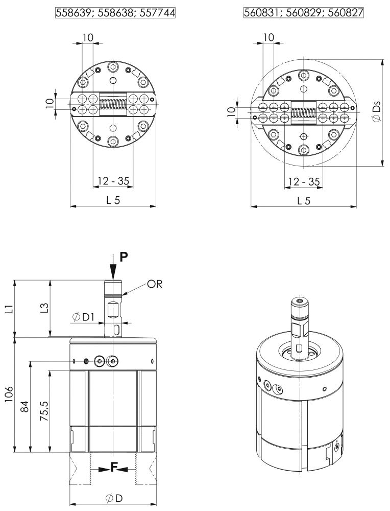 Конструкція: Макс. допустима швидкість: 20 [об/хв], підходить для кріплення Weldon та гідравлічного розтискного патрона. Розроблений для температур навколишнього середовища від 0° до 60° та транспортування заготовок вагою до макс. 8 кг. У комплект поставки входять три змінні ущільнення. Доступний у двох варіантах для розмірів заготовок до макс. 50 мм або макс. 70 мм.