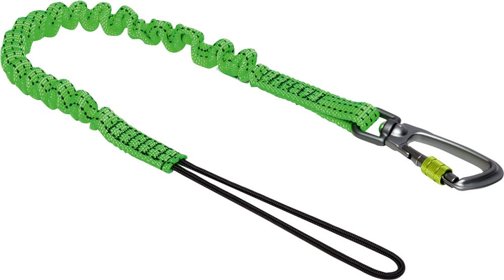 Конструкція: Виготовлений з надзвичайно міцної еластичної тканини з вільно обертовим на 360° вкручуваним карабіном. Спеціальний карабін запобігає скручуванню страхувального пристрою. Схвалено відповідно до ANSI/ISEA 121-2018.