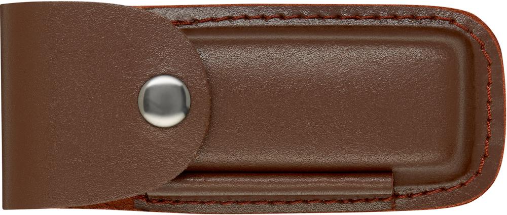 Vyhotovenie: Čepeľ z nehrdzavejúcej ušľachtilej ocele, tvar šťuky, aretovateľná, nerezové čeľuste, drevené opláštenie. Dodávka vrátane koženého puzdra a ocieľky na brúsenie.