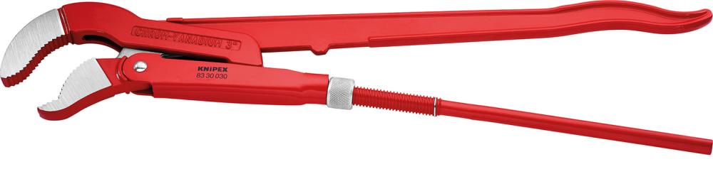 Трубні кліщі, S-подібні губки № 83 30. Хром-ванадієва електросталь, загартована в олії, зубці додатково загартовані індукційним способом. Порошкове покриття. Самоблокування завдяки зубцям, зміщеним проти напрямку обертання.