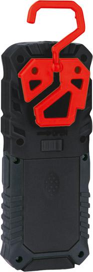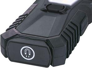 Vyhotovenie: puzdro z plastu, s gumovým povrchom. S hlavným svetlom COB LED a bodovým svetlom SMD LED. Nastavenie intenzity svetla s 2 stupňami (30/100 %), s funkciou blikania. Hlava lampy je otočná o 180°. Zadná strana lampy so závesným háčikom a magnetom. V rozsahu dodávky 4 batérie Mignon AA/LR06.