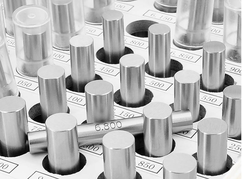 Vyhotovenie: Z vysoko kvalitnej, špeciálne legovanej a viackrát starnutej nástrojovej ocele. Tvrdené (62 ±2 HRC), popustené a jemne brúsené. Použitie: Ako nastavovacie normály pre zobrazovacie meracie prístroje, na kontrolu rozstupov osí, kužeľov a iných obrobkov v spojení s paralelnými koncovými mierkami, na stanovenie priemeru závitovej drážky alebo priemeru deliteľného kruhu pri ozubení. Trieda tolerancie 1.