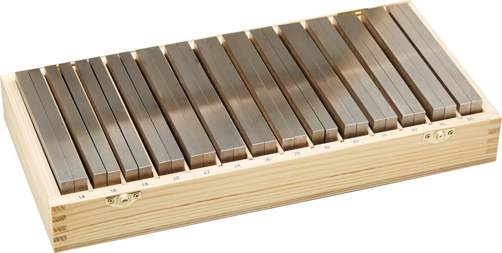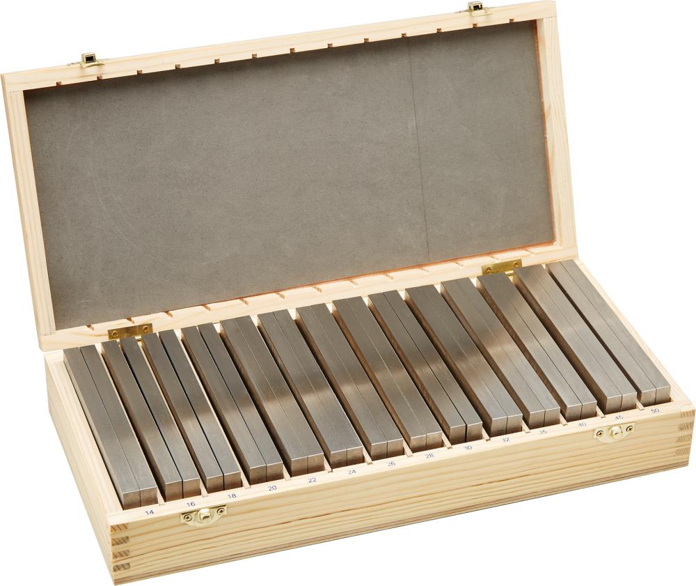 Súprava paralelných podložiek Vyhotovenie: menovité rozmery podľa ISO 2768 m. cementované a brúsené. Párová tolerancia pre h = 0,01. Dodávka v drevenom puzdre s odnímateľným sklápacím vekom. Použitie: Paralelné podložky sa používajú ako podložky pod obrobky pri najrozličnejších procesoch obrábania. Skracujú časy upínania a znižujú tak náklady na obrobky. Obsah súpravy po 1 páre š x v mm: 14 x 10; 16 x 10; 18 x 10; 20 x 10; 22 x 10; 24 x 10; 26 x 10; 28 x 10; 30 x 10; 32 x 10; 35 x 10; 40 x 10; 45 x 10; 50 x 10 Hersteller: Einkaufsbüro Deutscher Eisenhändler GmbH, EDE Platz 1, 42389 Wuppertal, DE, +4920260960, webkontakt@ede.de