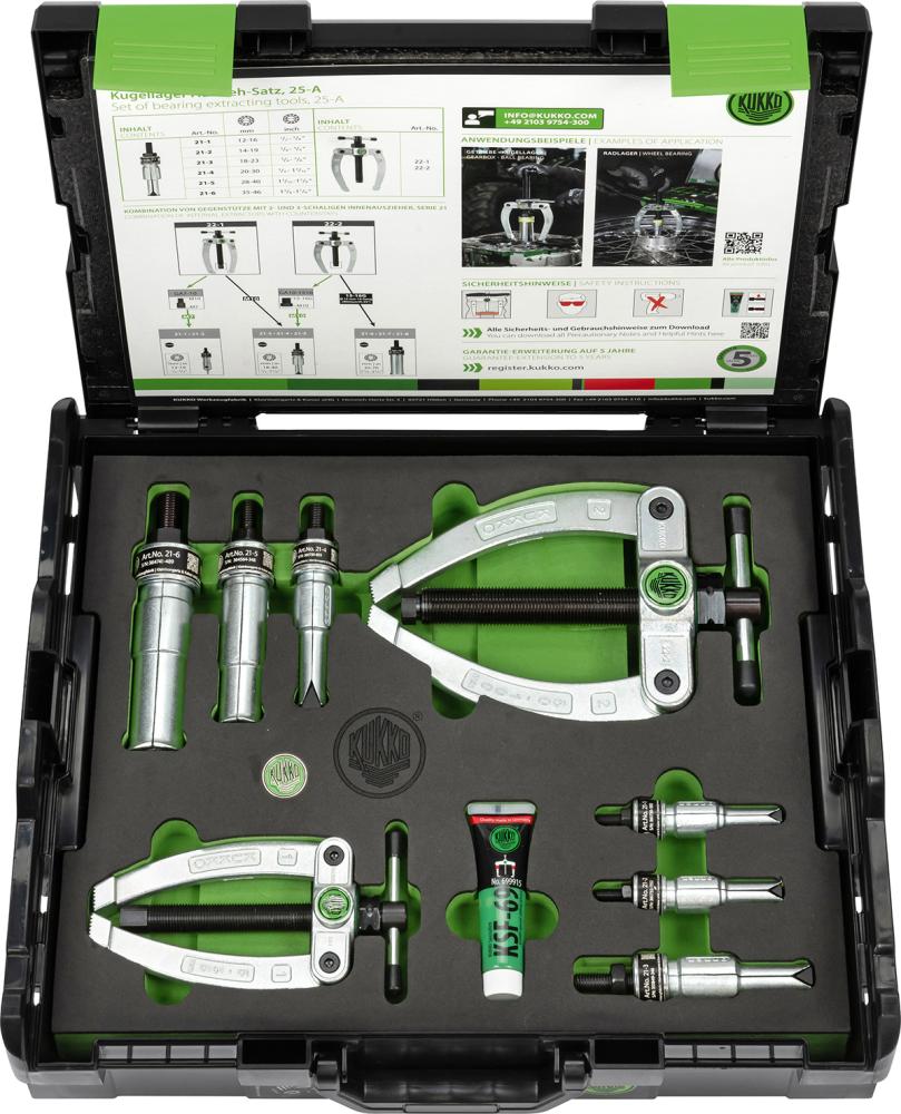 Vyhotovenie: Dodáva sa v L-Boxxe, vždy s návodom na používanie na veku. Použitie: Na vyberanie vnútorných ložísk, vonkajších krúžkov ložísk a puzdier.