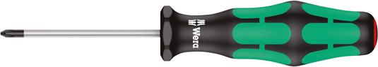Vyhotovenie: Z vysokolegovanej špeciálnej ocele. S okrúhlou čepeľou. Rukoväť s ochranou proti odkotúľaniu. S laserovým hrotom a mikrodrsným povrchom. Tým sa zníži prítlačná sila a zabráni sa vykĺznutiu z hlavy skrutky. S ergonomickou viaczložkovou rukoväťou Kraftform, s integrovanými mäkkými zónami pre lepšie uchopenie, tvrdými zónami pre vysokú pracovnú rýchlosť. Okrem toho majú skrutkovače na hlave vyrazený symbol výstupu a veľkosť.