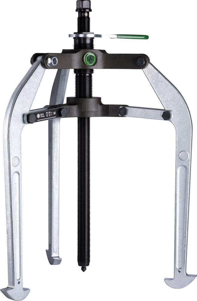 Sťahovák s prednastaviteľným rozpätím, trojramenný, zápustkovo kovaný, model 12 Vyhotovenie: S jednodielnym obojstranným sťahovacím hákom z chrómovanej legovanej nástrojovej ocele. S automatickým nastavením rukoväti a špeciálne potiahnutým prítlačným vretenom s mimoriadne dobrými klznými vlastnosťami. Voľne otočný strediaci hrot sa dá vymeniť a premiestniť (guľa/hrot). Silný model. Použitie: Na sťahovanie ťažkých guľôčkových ložísk, remeníc, ozubených kolies a podobných dielov. Hersteller: Kleinbongartz & Kaiser oHG, Heinrich-Hertz-Str. 5, 40721 Hilden, DE, +4921039754400, info@KUKKO.com
