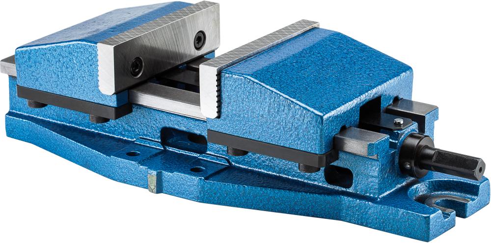 Конструкція: низька, міцна конструкція, корпус виготовлений зі спеціального сплаву. Змінні та двосторонні затискні губки загартовані, шліфовані та поліровані. Шпиндель покритий і таким чином захищений від бруду та стружки. Завдяки центральному затисканню, бічні напрямні дозволяють легко та точно регулювати лещата.