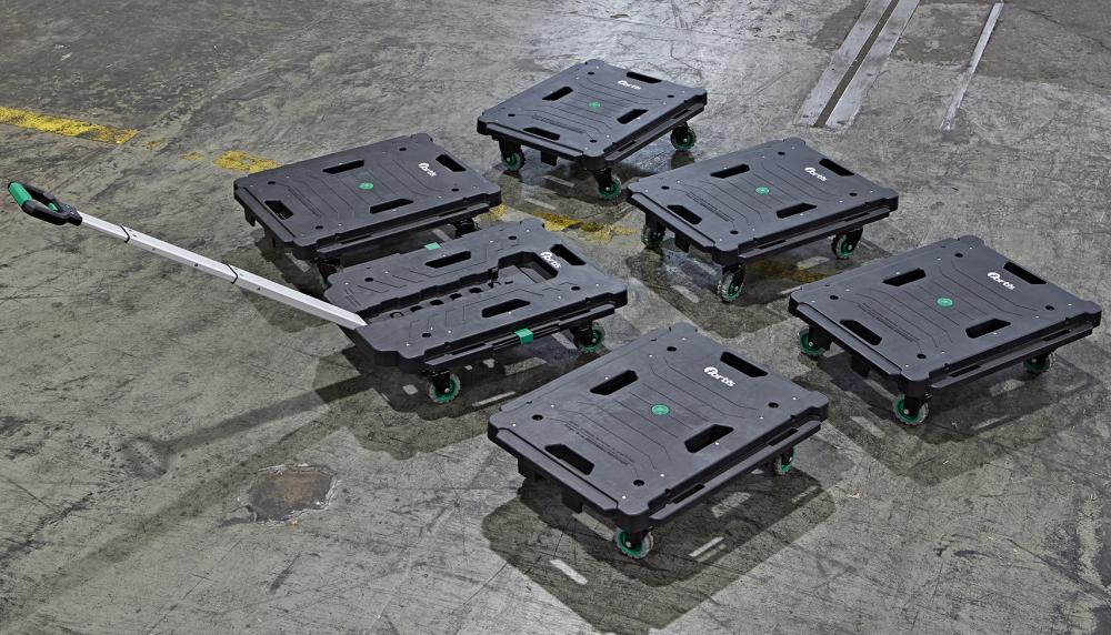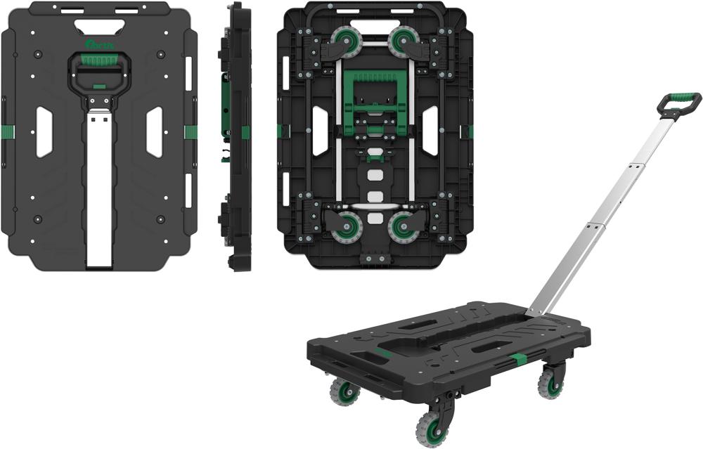 Конструкція: змінна транспортна одиниця, яку можна розширити додатковими універсальними візками для великої платформи. Складні та тихі колеса.