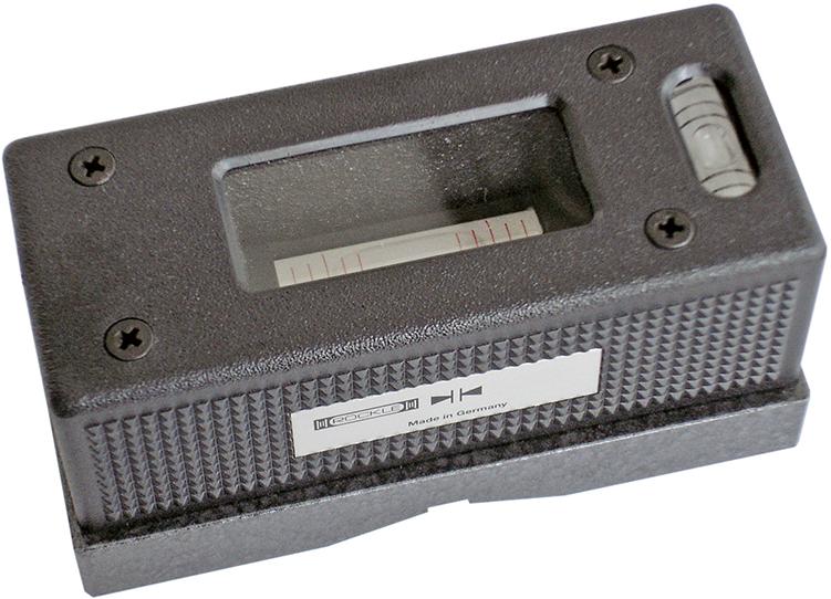 Vyhotovenie: Z kvalitnej špeciálnej zliatiny, so štruktúrovaným lakovaním. Plochá, prizmatická meracia plocha (150°), pozdĺžna a priečna prizma jemne brúsené. Dlhá libela, priečna libela a úplná tepelná izolácia. Použitie: Na presné vyrovnanie veľmi krátkych vodorovných plôch, kľukových hriadeľov a čapov na motoroch alebo strojoch.