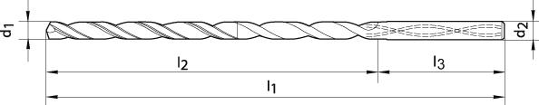 Vrták na hlboké diery, 25 x D Vyhotovenie: Pravorezné. Špeciálny tvar drážok s dvojitými fazetami a špeciálnym výbrusom. So skrutovým vnútorným chladením cez výstupky. Bočný uhol čela 30°, hrúbka jadra väčšia než štandardne a bez stúpania skrutkovice. Vrták má veľmi dobré samostrediace charakteristiky. Použitie: Na vŕtanie otvorov s veľmi tesnými toleranciami priemeru a veľmi kvalitnými povrchmi. Vhodné na vŕtanie extrémne hlbokých otvorov až do 25 x D s vysokými reznými rýchlosťami. Obzvlášť na obrábanie krátkotrieskových materiálov, ako sú liatina, sivá liatina, zušľachtená sivá liatina, temperovaná liatina a liatina s guľôčkovým grafitom, ako aj zliatiny hliníka s vysokým obsahom kremíka. Hersteller: Gühring KG, Herderstr. 50-54, 72458 Albstadt, DE, +497431170, info@guehring.de