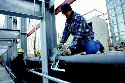 Конструкція: Фіксований кронштейн та притискна пластина виготовлені з одного шматка загартованої спеціальної сталі, стійкої до кручення. Новий U-подібний розсувний кронштейн виготовлений з кованої загартованої сталі. Максимальна безпека завдяки прямій передачі зусилля на розсувний кронштейн. Термостійка високопродуктивна притискна пластина з великою кульовою головкою, що повертається на 35° та змінна, із загартованою, просоченою маслом вставкою зі спеченої сталі. На 20% більше затискного зусилля на оберт шпинделя завдяки оптимізованому профілю рейки.