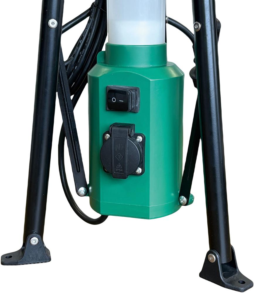 Конструкція: Міцний пластиковий корпус та циліндр розсіювача зі складними ніжками та вбудованою намоткою кабелю. Велике, рівномірне освітлення з низьким рівнем відблисків, кут променя 360°. З патроном із захищеним контактом у основі. Поставляється з плечовим ременем.